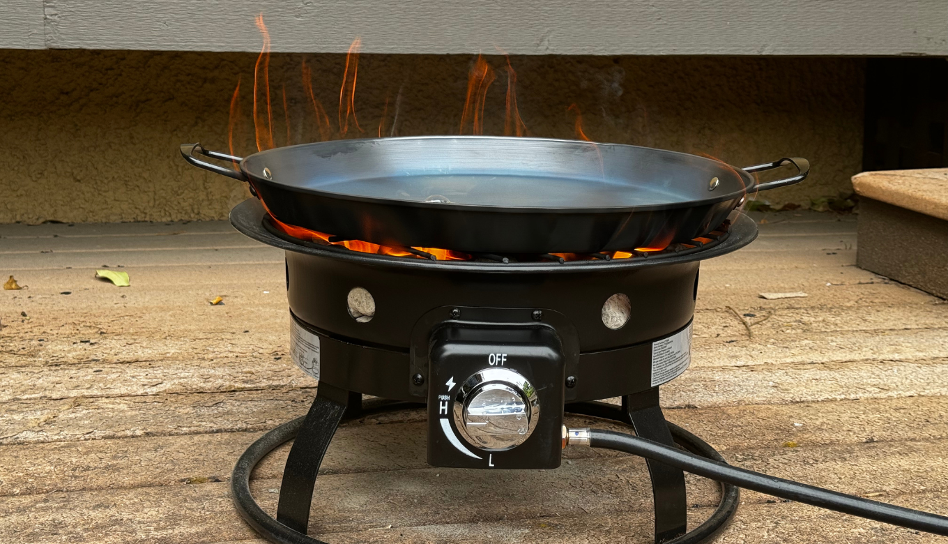 Includes pre-attached 10-Ft hose to keep your standard 20-Lb propane tank cylinder (not included) safely out of sight, fully adjustable regulator with chrome valve knob for varying flame height, and 4.4-Lb natural lava rock set designed to enhance flickering effect.